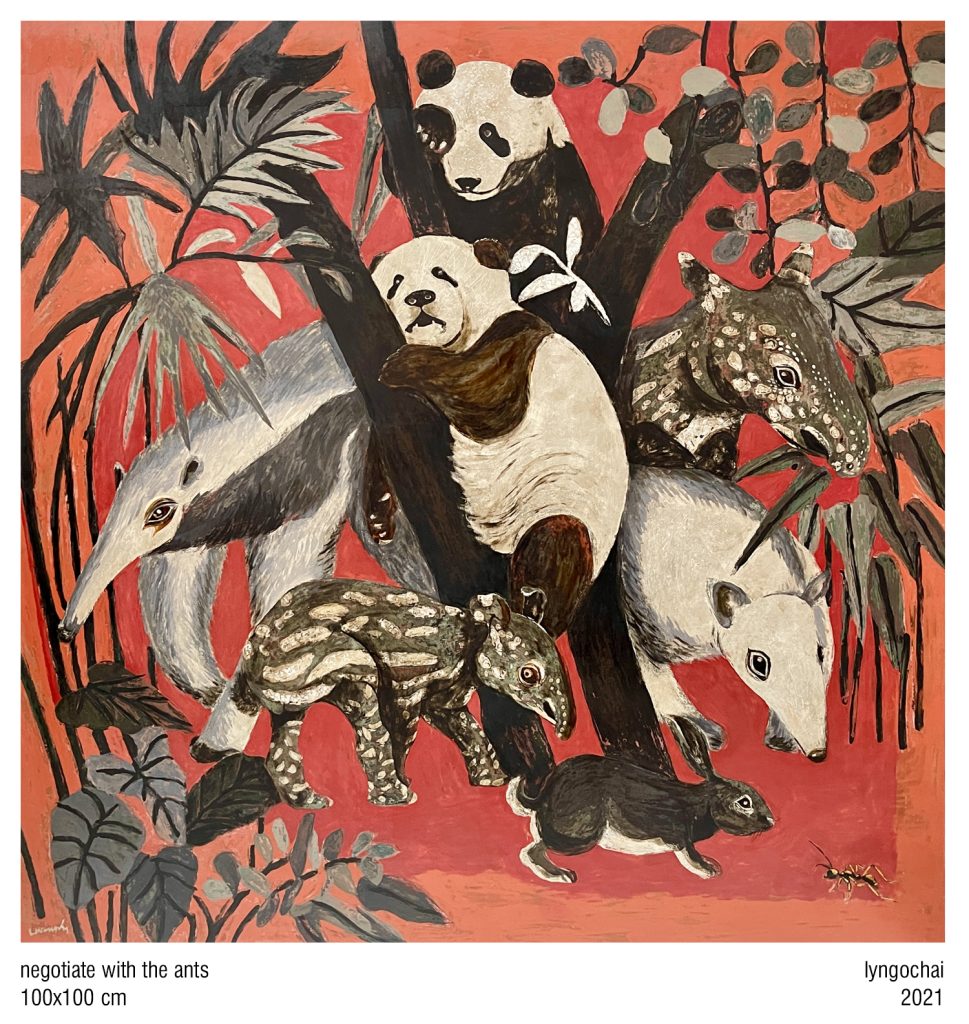 I’d like to interpret animal imageries, natural – man-made, in my own voice. In order to protect the animals, we must learn how to see them, watch them, and consequently, develop a fondness for them. Do you feel at ease when you see a deer, or a dog standing next to a leopard? Where are we hiding when the rhinos are poached? Can we, or can we not co-exist peacefully with Nature?